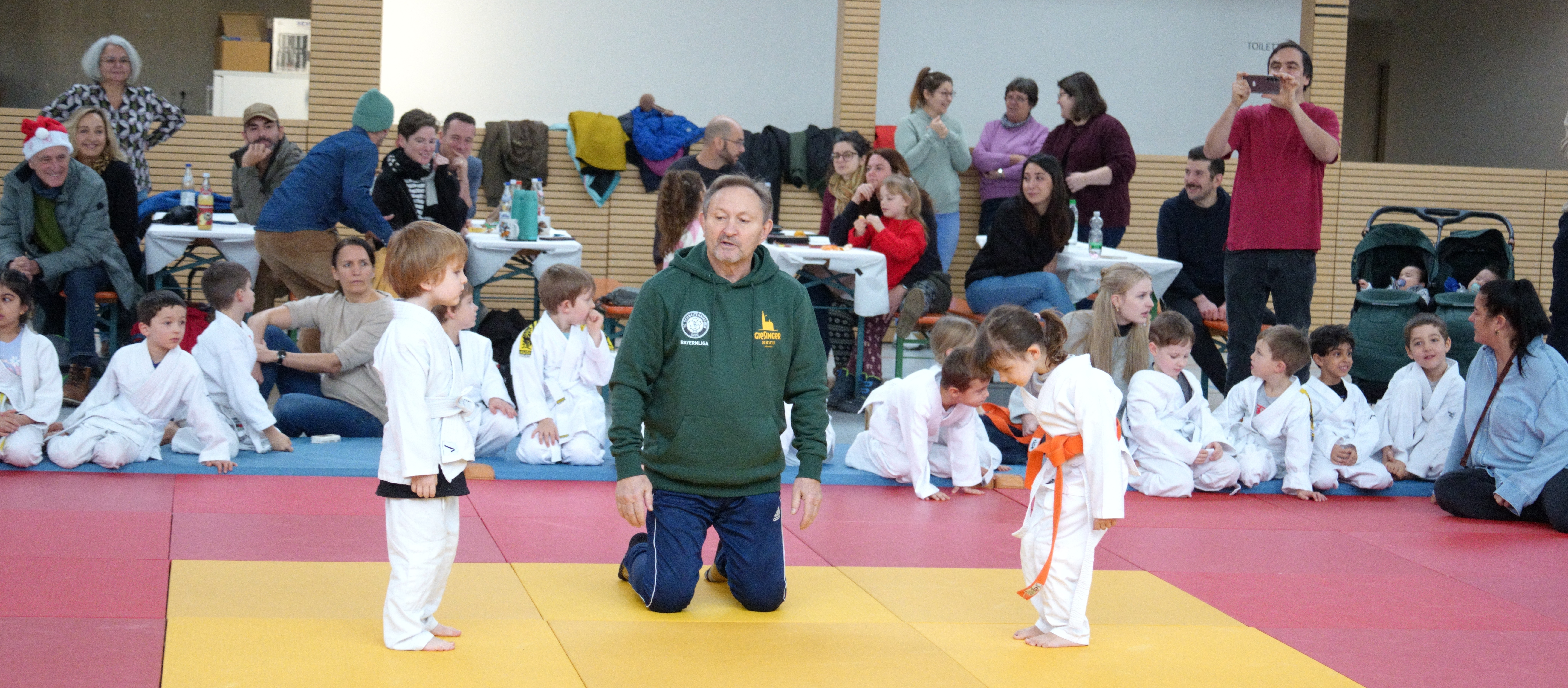 Das Judo-Nikolausturnier ist jeder Jahr ein ganz besonderes Ereignis und in seiner Art recht einzigartig. Ein optisches Vergnügen. Kaum eine Großstadt kann damit aufwarten, aber in dem kleinen Ort Schweitenkirchen in der Hallertau gibt es das. Hier bekommen schon die ganz Kleinen eine Chance, beim Judo dabei zu sein (Es kommt vor, dass manche Interessenten noch Windeln tragen, wie man an einem Hinweis in der Turnhalle erkennen kann, diese bitte nicht in die Mülleimer zu werfen!) Aber diese Kleinen haben bereits recht viel Spaß daran, miteinander zu kämpfen – auch wenn es manchmal mehr ein Raufen ist. Und sie treten bereitwillig an – wenn sie nicht gerade etwas anderes vorhaben. Die Judo-Trainer Franz und Sylvia Dausch, beides Trainer aus der Weltmeister-Klasse, kommen mit den Kleinen sehr gut zurecht. Und die Kleinen lieben sie. Und die Kämpfe sind sehenswert und man spürt den Spaß, den die Kleinen dabei haben. Im Endeffekt ist es dann gar nicht so erstaunlich, dass Judoka aus Schweitenkirchen immer wieder nicht nur die Bayernliga und die Bundesliga erreichen, sondern auch bei Europa- und Weltmeisterschaften dabei sind. Denn wenn die Schweitenkirchener Judoka mit 16 Jahren an den Bayerischen Meisterschaften teilnehmen, dann haben sie oft schon 10 Jahre Kampferfahrung hinter sich.